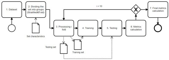 We repeated steps 3–6 for each fold using the StratifiedKFold cross-validation process. Each time, we selected a different fold to be a test set and the remaining folds to be training sets.