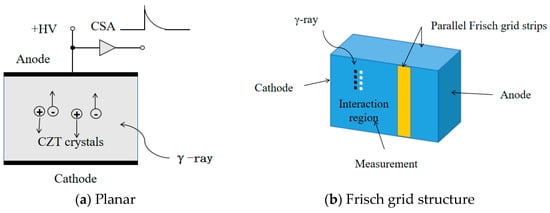 197. Kim, Y.; Lee, W. Development of a Virtual Frisch-Grid CZT Detector Based on the Array Structure. J. Radiat. Prot. Res. 2020, 45, 35–44. [Google Scholar] [CrossRef]