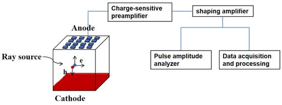 The working principle of CZT as a detector material involves the interaction of high-energy radiation such as X-rays or γ-rays with the CZT crystal within a biased detector. When irradiated, the detector absorbs a portion or the entire energy of the incoming radiation. This absorption leads to the generation of electron–hole pairs within the crystal, which are proportional to the incident high-energy radiation. These pairs drift under the influence of an electric field toward different electrodes within the crystal. Eventually, they are collected on the electrodes [53]. Electric pulses are formed on the electrodes, and after passing through charge-sensitive preamplifier analog circuits, voltage pulses proportional to the energy of the incident radiation are output [54].