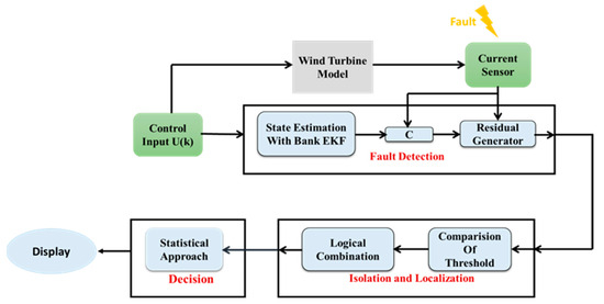 Furthermore, other diagnostic approaches are developed to detect and locate multiple and simultaneous faults for the current sensors of the DFIG. This is done through a bank of observers based on a Kalman filter, structured according to the generalized observer scheme (GOS), as described in [30,31], or structured according to the dedicated observer scheme (DOS), as presented in [32,33].