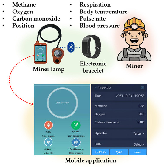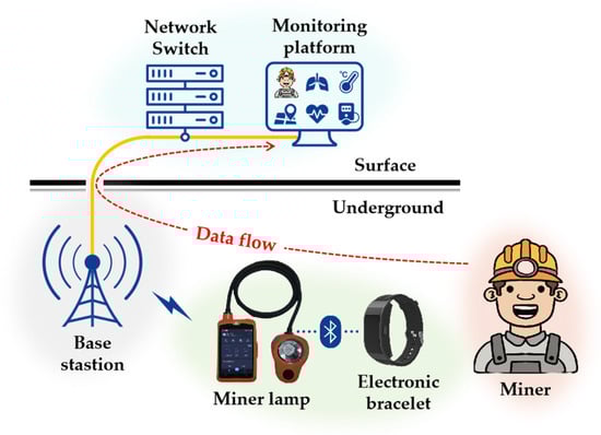 Underground mining operations involve various hazards [1,2], such as collapses, explosions, toxic substance exposure, and mechanical accidents, which pose serious risks to the safety and well-being [3] of underground miners. To enhance safety in production, it is crucial to establish an efficient perception system that can provide early warnings for safety hazards and health issues. This system should encompass data collection, transmission, and processing of information regarding each miner’s health status, fatigue level, exposure to environmental gases, and precise location.