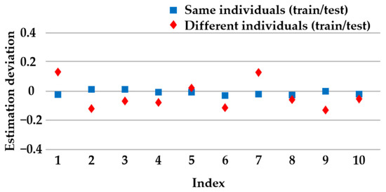 The neural network is continuously trained to update the weights and thresholds using datasets derived from the same individuals for both training and testing. This approach ensures a pH value judgment error that does not exceed 0.05, as shown in Figure 10, even when considering different individuals, thus remaining within an acceptable threshold of 0.2 for the purpose of fatigue estimation.