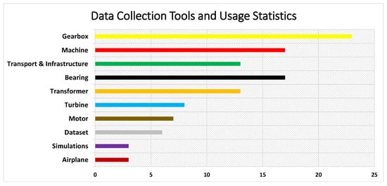- Construction and Earthmoving Equipment: Construction machinery is subjected to hard geographical and dangerous surroundings, leading to rapid wear and tear. Condition monitoring helps in predicting problems and properly scheduling maintenance. Construction equipment is impacted by a variety of loads and usage patterns. Monitoring allows us to see how these fluctuations affect the health of the machinery [64]. Vibrations might indicate possible problems that negatively impact safety. Timely monitoring plays a role in the prevention of accidents caused by equipment failures.