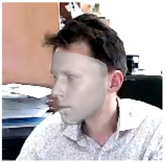To predict the heart rate, we used a sliding window with a length of 15 frames and a stride of 15 frames. The length of the sliding window was chosen based on our experiments (more details are described in Section 4.3), while the stride was chosen to reduce the correlation between the training data to the minimum. We propose processing the input frames using 3DDFA_V2 [,] to extract 68 facial landmarks: 17 for the face, 10 for the eyebrow, 9 for the nose, 10 for the eyes, and 22 for the mouth. 3DDFA_V2 is the SOTA on the Florence dataset for 3D face reconstruction (in our case, the person could move their head, and 3DDFA_V2 could keep providing the facial landmarks even when the face was completely turned to the left or right due to the fact that it provided 3D coordinates). Figure 2 shows a 3D face reconstruction of a person from our dataset turning his head to the side produced using 3DDFA_V2. In addition, according to [], 3DDFA_V2 achieved more robust and accurate performance in different movement conditions compared with OpenFace 2.0 [] and MediaPipe [].