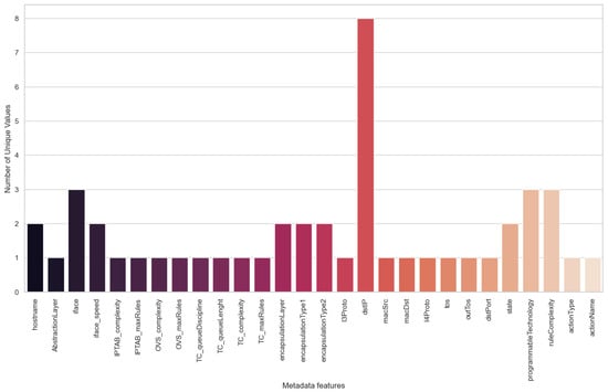 Number of unique values in each metadata feature.