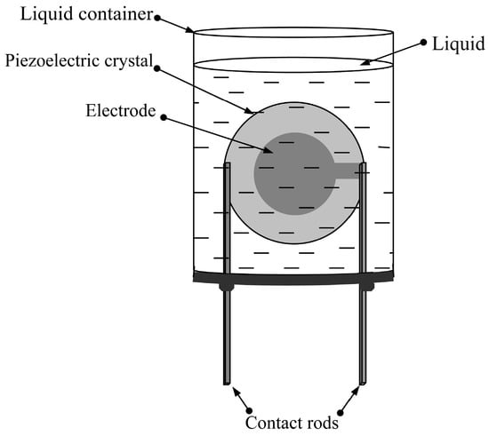First, the frequency dependences of the real and imaginary parts of the electrical impedance of the free resonator were measured using an E4990A impedance analyzer (Keysight Technologies, Santa Rosa, CA, USA). Then, the container was filled with the liquid sample under study so that the resonator was completely immersed in the liquid, and the measurement of the above frequency dependences was repeated. Each liquid sample, immediately before measurement, was stirred on a magnetic stirrer for one hour. The temperature in the room with measuring equipment was maintained within 25–27 °C.