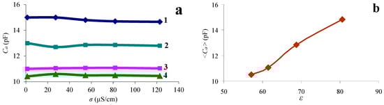 Figure 8a. It can be seen that this capacity is practically independent of the conductivity of the liquid and decreases with increasing the glycerol concentration. The additional capacity