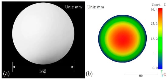 (a) Gypsum spherical physical photograph; (b) 3D model of gypsum spherical surface.