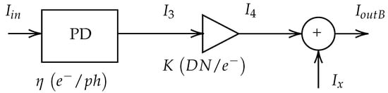 The subsequent steps include conversion gain, presented in both Model A and Model B, where accumulated electrons are converted to voltage (in microvolts, ). In this step, the gain factor is noted (). The conversion from analog information to digital data converts the voltage signal into digital numbers (). This time the gain factor is noted (). These two gains are merged into an overall gain factor (). Therefore, the computation of the theoretical result of the conversion from analog information to digital data reads as follows: