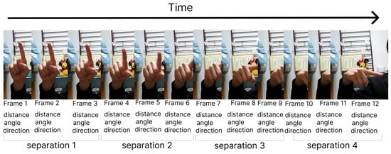Separate the video frames into groups to calculate feature distance, angle, and finger direction.