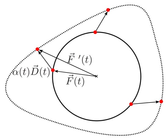 Here,  is a weighting factor, which can be chosen arbitrarily. However, we demand that  should be closed and continuous, which forces  to be continuous with . Figure 4 shows the principle of the procedure, using a circle as the reference object. In this illustration, the dashed line represents the deformed contour.