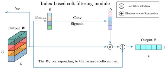The literature proposes a soft filter selection that preserves all features and implicitly selects the optimal filter. Considering that the FWConv used in this paper has already performed the dynamic fusion of important wavelet basis, the computational load is greatly increased if multiple mixed wavelet basis are retained, so only the optimal filter was used, and the others were discarded. In addition, a more efficient attention mechanism was used as the weight allocation metric for each round of wavelet basis. The structure of the index-based soft filtering module is shown in Figure 7.