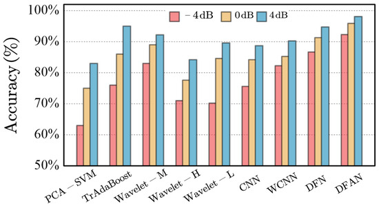 The DFAN method still had obvious advantages in the mixed noise link, exhibiting the best classification performance in each case.