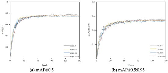 Next, the results of different improved models of YOLOv7 were compared, as shown in Table 4.