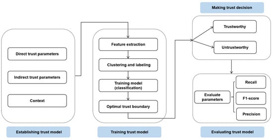 In recent years, there has been an increase in research on trust management in the IoV [,,,,,,,,]. We can divide the existing trust management models into: learning-based and traditional methods-based trust management models.