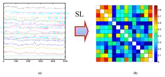 Implementation of symmetric matrix for EEG signals: (a) Initial data, (b) Symmetric matrix [97].