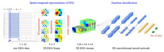 - Cho, J.; Hwang, H. Spatio-Temporal Representation of an Electoencephalogram for Emotion Recognition Using a Three-Dimensional Convolutional Neural Network. Sensors 2020, 20, 3491. [Google Scholar] [CrossRef]