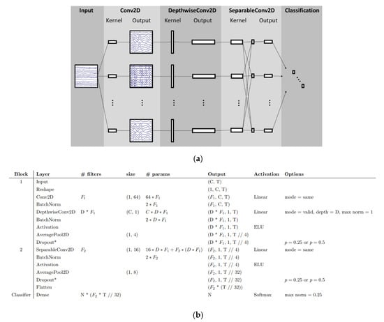 EEGNet. (a) Block diagram; (b) Model forms as proposed in [200].