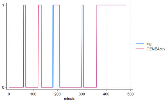 Figure 6) closely tracked participant recorded wear/non-wear times; data shown for a representative participant.