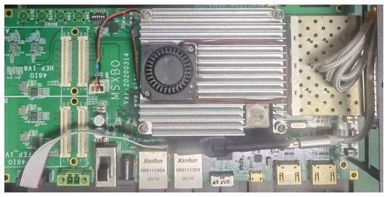 As shown in the test results of Table 4, the processing speed and data throughput of the FPGA acceleration platform were 4.16 times higher than that of the CPU. When in the GPU environment, the Pytorch deep learning framework could take full advantage of the GPU’s multi-core parallel processing, which greatly improved the system’s data throughput rate to 16.73 GOPS, which was about 2.3 times higher than that of the FPGA compute acceleration platform, but the system power consumption also increased. In terms of energy efficiency, the FPGA computing acceleration platform designed in this paper improved 73 times and 9.125 times compared to the CPU and GPU, respectively. Our FPGA implementation showed much higher energy efficiency when still meeting the data processing requirement.