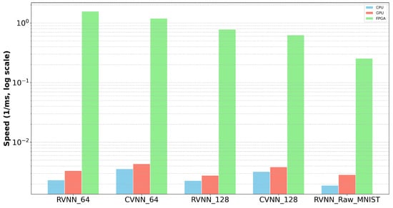 Several studies [19,20,21] have investigated hardware accelerators for MNIST classification using neural networks, primarily centered on CNNs. These studies also provide comparisons of speed and resource utilization in contrast to CPUs or GPUs.