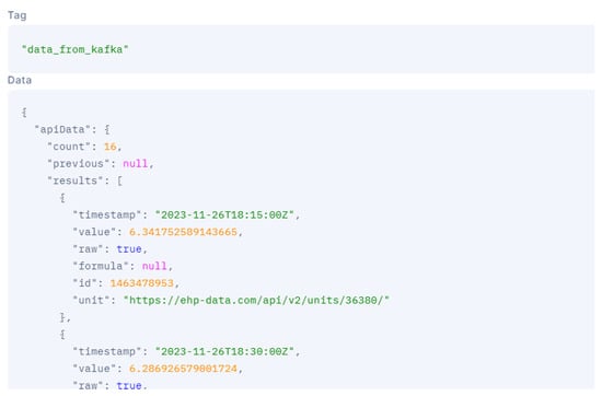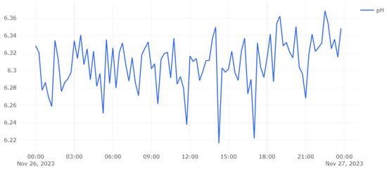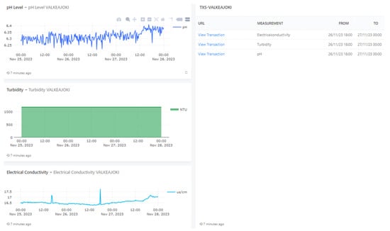 Figure 7 highlights one point with a pH value of 6.34175 at the specific time of 26 November 2023 at 18:15, indicating a pH value of 6.34175. As has been stated before, these timestamped data are stored in the IOTA network and can be visualized (Figure 8) when clicking in “View Transaction” for pH measure.