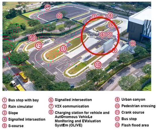 Experiment setup at the intersection of Singapore CETRAN (Centre of Excellence for Testing & Research of Autonomous Vehicles—NTU) autonomous vehicle test track.