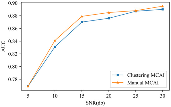 Due to the utilization of experimentally acquired data in the study, it inherently contains a certain level of noise interference. To assess the proposed method’s resilience to noise, additional noise of varying intensities was deliberately introduced into the dataset. In this experiment, spectra alignment and global self-adaptive normalization were employed, while the parameters of the DBVAE network were configured with the same settings as described earlier. Figure 12 illustrates the variation curve of AUC values under different signal-to-noise ratios (SNRs), where a higher SNR corresponds to lower added noise energy. It can be observed that the AUC value experiences a substantial decrease when the SNR is 10. However, for SNR values greater than 15, the performance degradation of the proposed method becomes less pronounced.