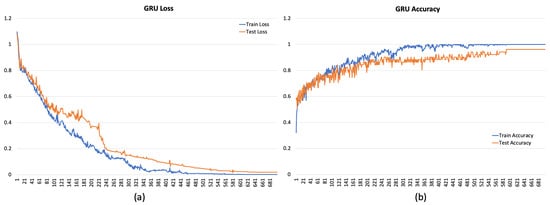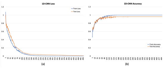 Again, an improvement compared to [] was achieved. In fact, in that case, we had obtained a maximum accuracy of 94.9% considering only two classes, whereas with the proposed approach, an accuracy ranging from 94.05% for GRU to 96.88% for 1D-CNN was achieved.