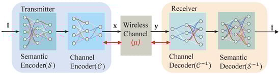 Current WSN communication strategies employ traditional separated source channel coding methods, prioritizing accuracy and high fidelity at the physical layer. This often necessitates transmitting complete raw data, irrespective of content relevance, resulting in inefficiencies. Furthermore, this conventional approach is susceptible to the “cliff effect”, leading to communication failures in challenging conditions. This makes it difficult to fulfill high-precision task requirements in low SNR environments, a situation exacerbated in high-density WSNs. Deep Learning (DL)-based semantic communication offers a novel approach by employing Joint Source Channel Coding (JSCC) through Deep Neural Networks (DNNs) [,], focusing on transmitting semantic information rather than all data, thereby demonstrating potential in reducing data volume and enhancing communication reliability.