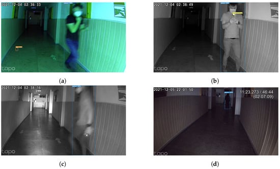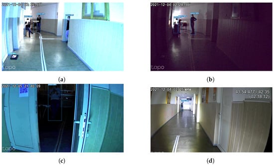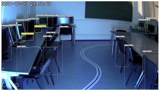 Given the sensitivities arising from human and animal presence surrounding the robot, particular emphasis is placed on the detection system for both entities. The 360-degree camera provides input imagery for an intelligent system, utilizing the YOLO (You Only Look Once) algorithm [,], intermittently alongside the HAAR algorithm [,,]. This combined approach aims to identify individuals within the robot’s visual field.