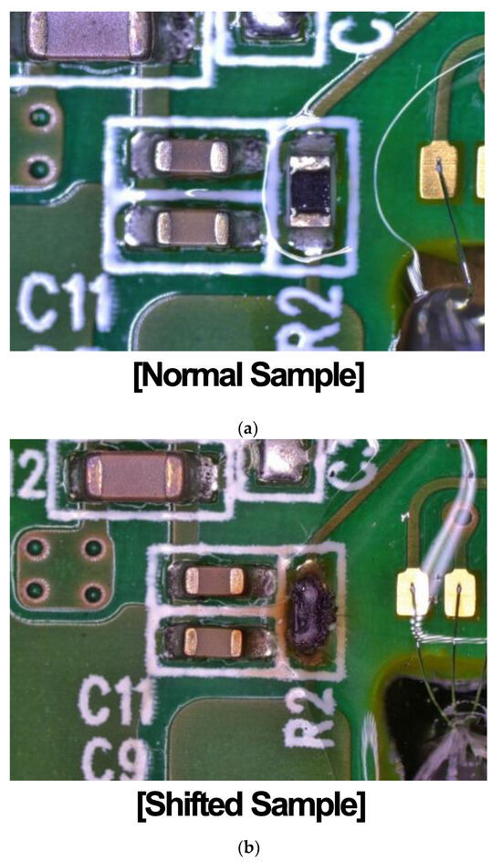 Comparison of main PCB between (a) the normal sample and (b) the shifted sample.