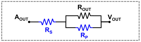 where VOUT is output voltage, AOUT is output of signal processing IC, ROUT is output resistance, RP is extrinsic parallel resistance, and RS is extrinsic series resistance. Table 1 presents the results of case simulation using the versatile model, which effectively predicts both increases and decreases in output voltage. In particular, case 3, as an unexpected case, is presented as an example of an increasing scenario, and a decreasing scenario can also be simulated with a large increase in RP.