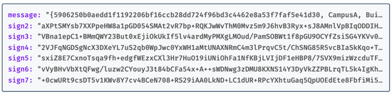 The structure of the DSN is JSON-formatted (see Figure 7), comprising the DSN generated by DA1, followed by signatures from DA2 to DA7. Each signature (Sign2 to Sign7) represents the validation of the DSN by the corresponding DAs, requested by DA1. For example, Sign2 is the result of DA1 requesting DA2 to sign the DSN, and similarly, Sign3 is the outcome of DA1’s request to DA3, continuing in this fashion up to DA7. DA1 then amalgamates these components, forming a JSON structure that includes the DSN and the signatures (Sign2 to Sign7).