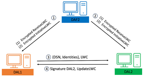 In our system, the last-word challenge (LWC), as illustrated in step 10 in Figure 29, played a critical role in detecting whether a compromised authority registered a DR. This mechanism involved the verification of the DSN within the Tangle. Each DA intending to upload a DR’s DSN had to obtain signatures from other DAs within their domain. In cases where a DA was compromised, it failed to respond correctly to the LWC, thereby preventing other DAs from endorsing it with their signatures.