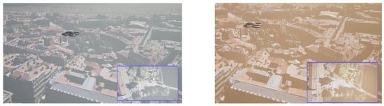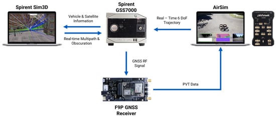 - A virtual environment was developed in UE, along with AirSim, Cesium, and photogrammetry data imported from Google Earth, allowing the authors to test and validate the effects of the VO algorithm over the hybrid fusion framework under different light and weather conditions. To further validate the framework, the hybrid FF architecture was compared to a classic FF framework. GNSS data were enhanced using the Spirent GSS7000 simulator with the OKTAL-SE Sim 3D software stack, introducing multipath during the data collection phase, and collected using a C009-F9P Ublox board. At the same time, IMU data were gathered using the Spirent GSS7000. In addition, GNSS outages were considered for both scenarios.