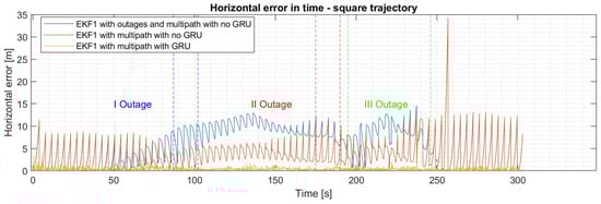 5.7. Evaluation of the Square and Survey Trajectories Considering GNSS Outages