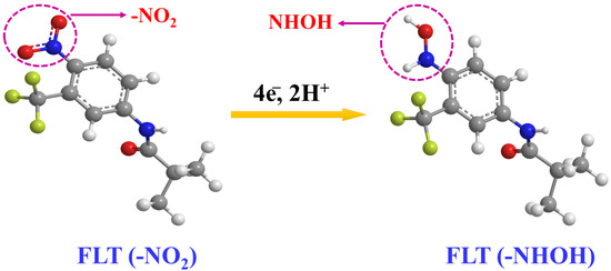 Flutamide (FLT), also known by its scientific name 4-nitro-3-trifluoromethyl-isobutilanilide, is an oral non-steroidal anti-androgen drug that is commonly utilized to control and treat patients suffering from prostate cancer [1,2]. Initially, FLT was utilized as an anti-bacterial agent, which was later found to contain the properties of an anti-androgenic drug. Most of the anti-androgen drugs effectively treat patients, specifically men with prostate cancer, by controlling the release of the male sex hormone, testosterone, which is the most important source for the growth and proliferation of prostate cancer cells. Thus, FLT does not completely cure prostate cancer; however, it helps in prolonging the survival of patients suffering from prostate cancer for several months or years by keeping the cancer cells under static conditions through the effective inhibition of testosterone binding to prostate tissues [3,4]. Furthermore, FLT has the potential to treat female patients suffering from excess androgen levels in their body due to polycystic ovarian syndrome (PCOS) [5,6]. However, like any medication, an overdosage of this FLT drug may cause numerous side effects in addition to the expected effects; some of the adverse side effects include diarrhea, nausea, an inflamed prostate, rectal bleeding, loss of sexual interest, blood in urine, liver malfunction, drowsiness, and methemoglobinemia. In addition, the transfer of FLT drugs to river water via effluents from waste-water treatment plants has been reported and the samples recovered from those environmental sources have confirmed the presence of FLT from varying concentration ranges of nanograms to even a few milligrams per liter [2,7,8]. Creatures living in this environment or consuming the FLT-polluted water will have adverse side effects.