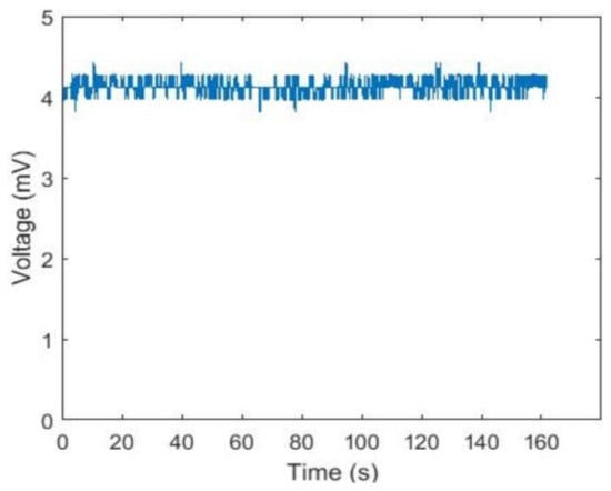 The raw channel 2 data are shown in Figure 8. During the experiment, since the excitation to photodetector 2 was a periodic light signal, its response was also a periodic voltage signal. At the same time, all channels except channel 1 were able to detect light from the light source. The raw data of channel 1 is shown in Figure 9. The response of channel 1 was always a very small voltage signal, which was not only interfered with by other channels but also by the dark noise generated by the system itself.