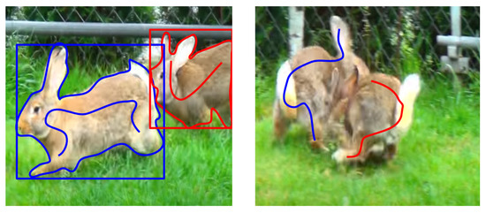 Given the expense and complexity of annotating videos, semisupervised and weakly supervised methods aim to reduce annotation requirements by using fewer annotated frames or less detailed annotations (such as bounding boxes) for training. In the early stages of VIS, there were explorations of using videos for segmentation tasks that involve weak, semisupervised, or unsupervised methods, with a focus on motion or temporal consistency. However, many of these earlier methods did not specifically tackle object coherence and relied on optical flow for frame-to-frame matching. An approach to unsupervised feature learning leverages low-level motion-based grouping cues [40], resulting in an effective visual representation trained using unsupervised motion-based segmentation on videos. Ref. [41] predicts segmentation masks of multiple instances by learning instance tracking networks using labeled images and unlabeled video sequences. MinVIS [42] achieves VIS performance without specialized video architectures by training an image-based instance segmentation model and treating video frames as independent images, thanks to its query-based approach for temporal consistency and memory-efficient inference online. MaskFreeVIS [5] achieves competitive VIS performance using only bounding-box annotations. The approach leverages temporal mask consistency through the temporal KNN-patch loss without any labeled masks, significantly reducing annotation costs. That method outperforms the optical flow-based baselines, using bounding box annotation. While boundary boxes require even less information than the scribble method we employ, it can be misleading in scenarios of significant occlusion, making uncertain which object it encompasses. Additionally, for objects with ambiguous boundaries, obtaining precise human annotation becomes challenging.
