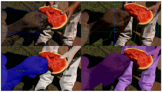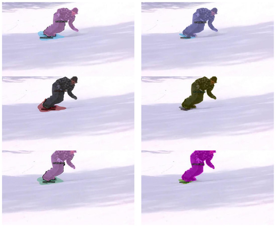 Track-then-segment approaches [25,26] initially focus on object tracking across video frames, and subsequently apply instance segmentation. They rely on specialized tracking algorithms to establish object identities across frames before segmentation. Recent advances in deep learning have led to end-to-end deep learning models [27] that directly address video instance segmentation, often using temporal information to enhance results. Online and real-time methods [28,29,30,31] are tailored for applications like autonomous vehicles and robotics; these methods are optimized for real-time or online video processing, emphasizing low-latency inference. Multiobject tracking and segmentation [32,33,34,35,36,37] aim to track and segment multiple objects simultaneously to address complex scenarios involving multiple interacting or overlapping objects.