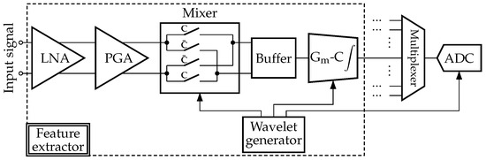 Herein, we adopted the A2F converter’s architecture based on the non-uniform wavelet sampling (NUWS) [] to perform the feature extraction and selected arrhythmia detection as the first application for the developed converter.