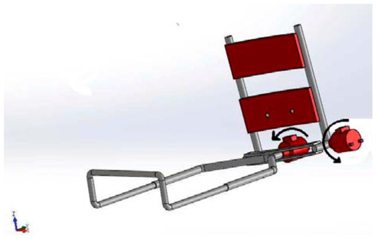 As shown in Figure 3, the rehabilitation robot is made up of multiple essential mechanical parts. To ensure the general functionality of the robot, the upper limb support fits tightly onto the human arm, acting as an exoskeleton part. It is important that it be attached securely, either onto a solid support or directly onto the triceps using metal plates on one side and scratches on the other. The stainless-steel plates are shaped like an arc to fit the contours of the triceps. The wrist handle adds flexibility to the system by slidably connecting to the spindle and adjusting to the size of the patient’s arm. It also gives the patient’s hand a grip and makes pronation-supination movements easier. The second degree of freedom is the crucial pronation-supination joint movement, which is made possible by the connecting spindle, which is attached directly to the motor shaft. It also serves as a connecting element between the wrist handle and the intermediate metal plate. The intermediate metal plate allows rotational motions (flexion/extension) between the two portions by binding the upper limb support and forearm support. We offer multiple modes of use for convenience: