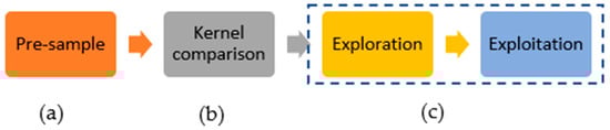 Deep learning classification steps: (a) Pre-sample processing, (b) Kernel comparison (see Table 1), and (c) Exploration and Exploitation stage.