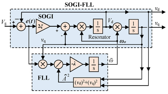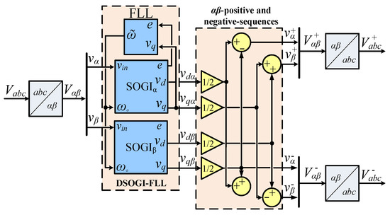 The detection block diagram of the positive- and negative-sequence component using the DSOGI-FLL approach.