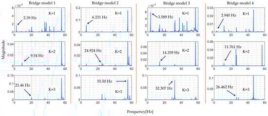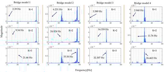 Dominant frequencies of the vehicle’s sprung-mass acceleration for the 4 bridge models shown in Table 2.