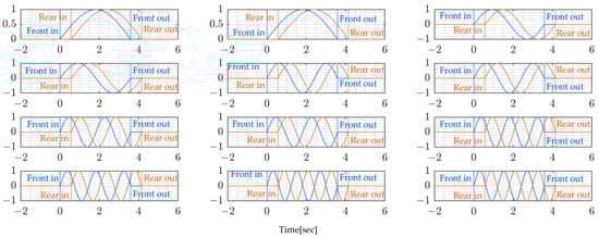 Comparing the results of the proposed method, Figure 23 and Figure 24, and the results from directly calculating the ratio of the Fourier spectra of vehicle vibration and bridge vibration, Figure 21 and Figure 22, the implications of the above results become clear. In simultaneous vibration measurements, it is necessary to measure the relative position of the vehicle on the bridge at the time. Furthermore, it is important to estimate natural frequencies to properly consider the changes in traffic load due to the vehicle’s position based on modal analysis theory and to determine the FRFs accordingly.