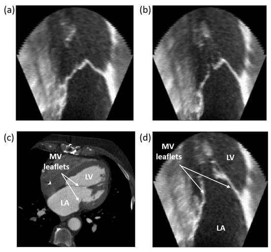 - Khalil, A.; Faisal, A.; Ng, S.C.; Liew, Y.M.; Lai, K.W. Mitral valve rigid registration using 2D echocardiography and cardiac computed tomography. In Proceedings of the 2017 International Conference on Applied System Innovation (ICASI), Sapporo, Japan, 13–17 May 2017; IEEE: Piscataway, NJ, USA, 2017; pp. 629–632. [Google Scholar]