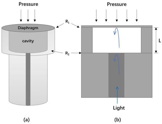 (a) Schematic of MEMS fiber-optic FP pressure sensors; (b) cross-section of the cavity structure.