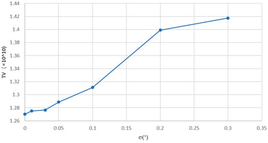Figure 6 presents the trend in TV values with the change in error angle σ. As can be seen, the TV value basically increases linearly with the increase in σ, which to some extent demonstrates the excellent performance of the TV value as an indicator to reflect angle errors.